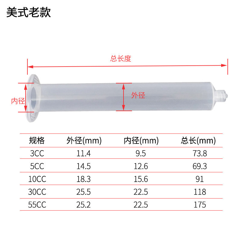 American transparent dispensing syringe dispensing machine syringe dispensing needle dispensing needle dispensing needle tube rubber tube transparent hose 3-55CC