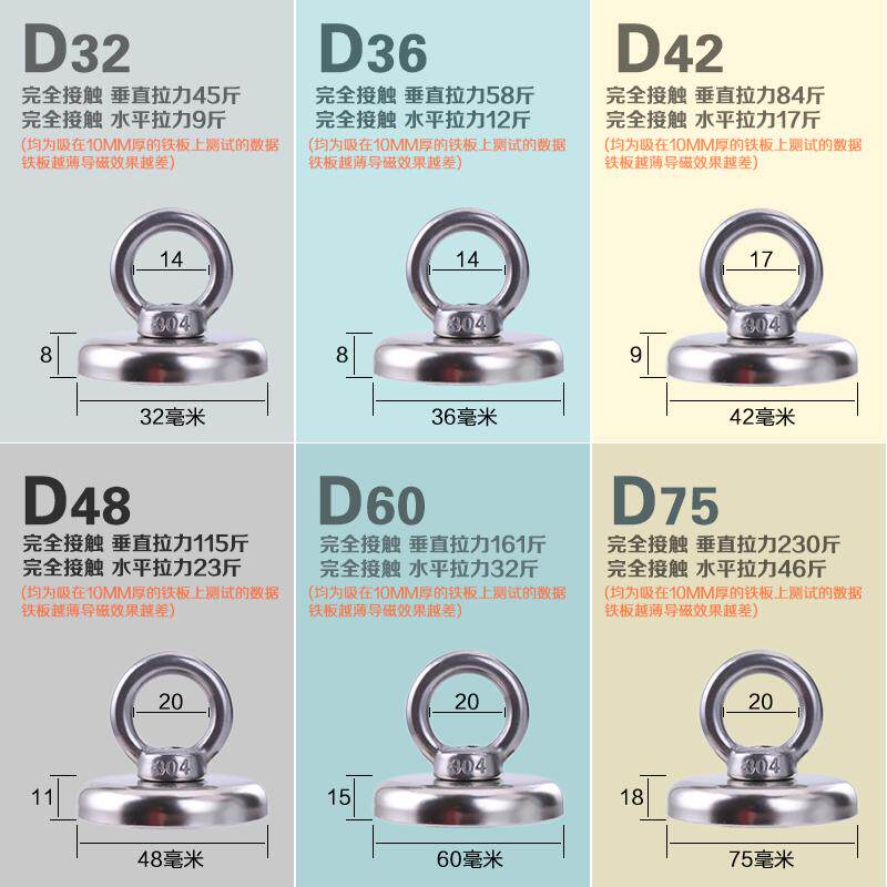 Super salvage strong magnet high-strength magnet neodymium iron boron block round hole suction cup hook large strong magnet