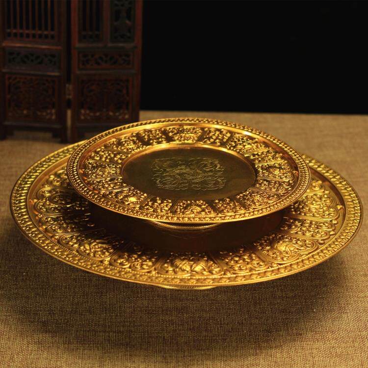 Supply tray for Buddha water fruit pan pure copper for fruit tray Buddha Hall High foot base lotus fruit tray supplies