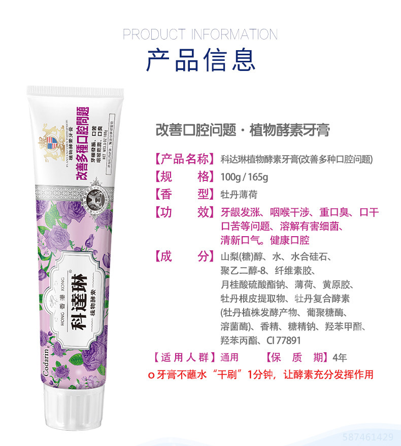 Hong Kong imported Codalin plant enzyme toothpaste fire-fighting to improve dental problems and fresh breath 100G