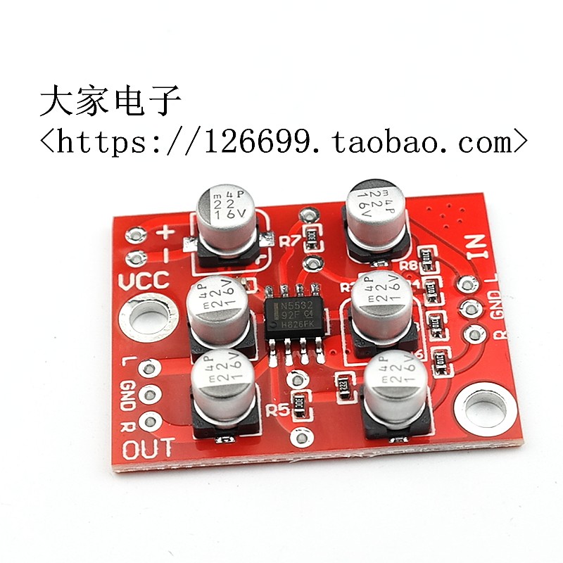 The AD828 NE5532 TDA1308 op amp preamplifier audio amplification module operates from a single dual supply