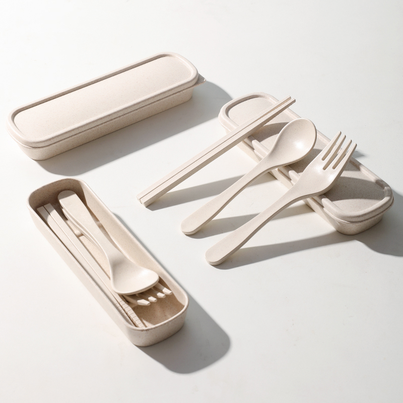 Portable cutlery Wheat straw set Spoon Chopsticks fork three-piece set Student cute travel portable box