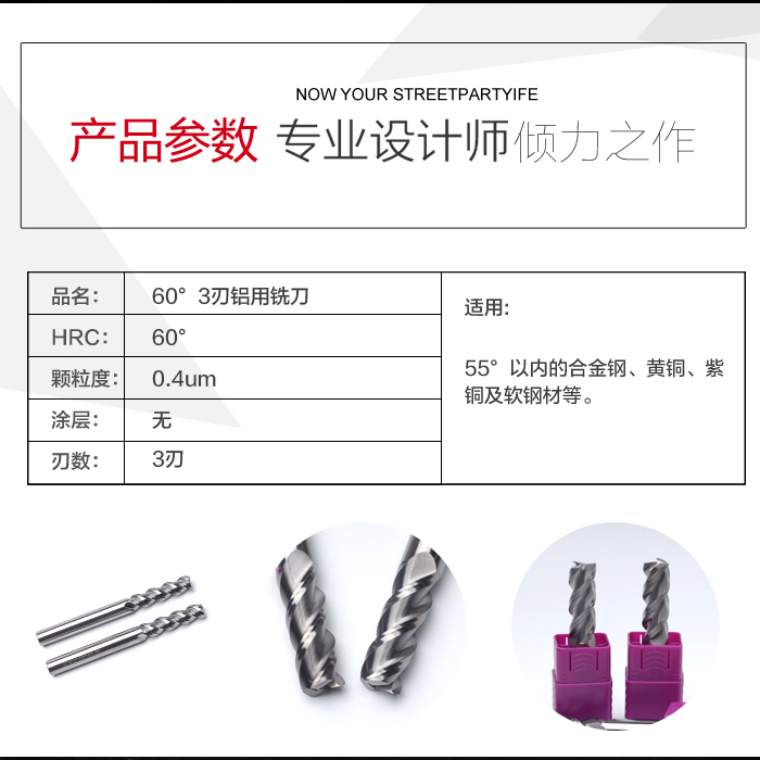 60 degree 3-blade aluminum tungsten steel alloy knife aluminum alloy flat head end mill CNC numerical control 6 8 10 12 14 16