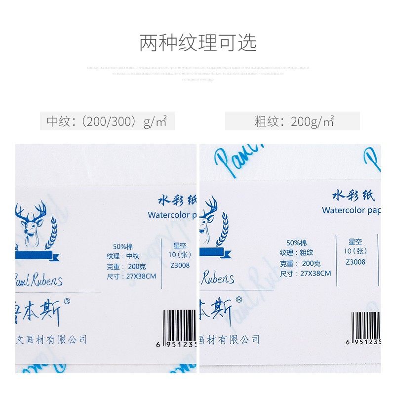 Rubens starry sky painted paper series 300g32K16K8K4 open fine medium coarse grain beauty salon writing raw half cotton watercolor paper