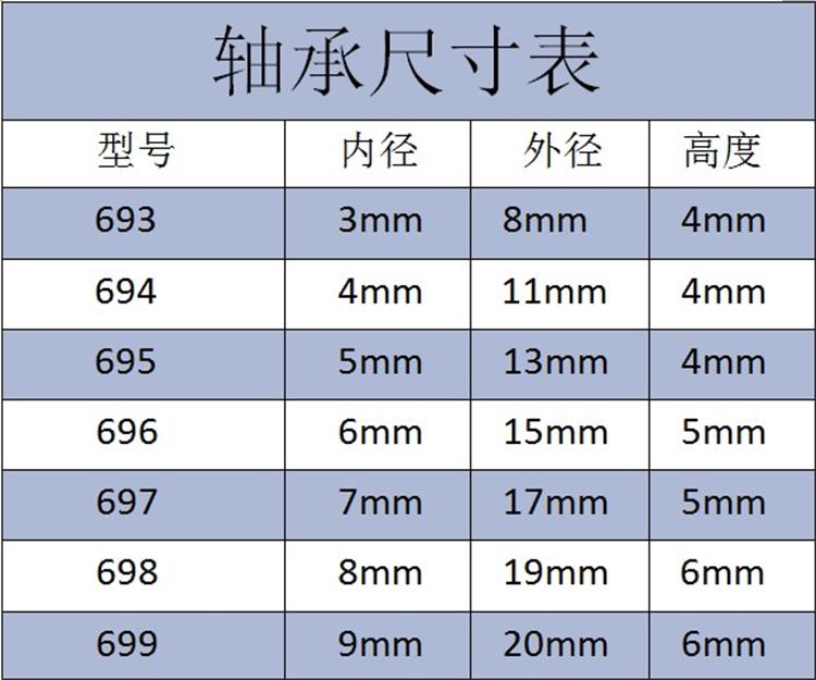 General level 693ZZ inner 3 outer 8 high 4 common level 694ZZ inner 4 outer 11 high 4 common level 695ZZ inner 5 outer 13 high 4 common level 696ZZ inner 6 outer 15 high 5 p