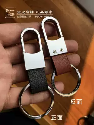 Men's leather car metal keychain creative keychain company advertising small gift custom LOGO lettering