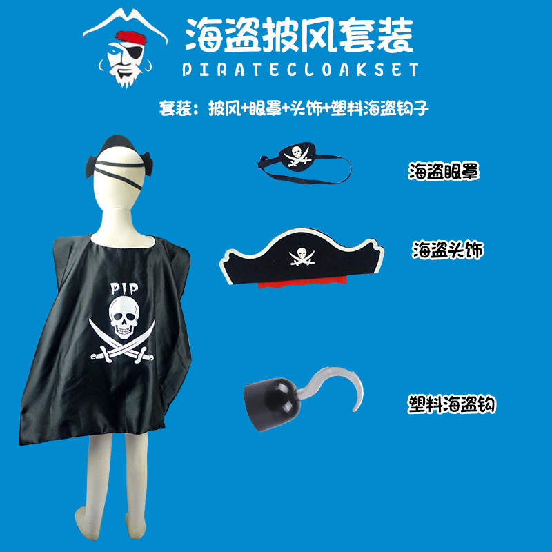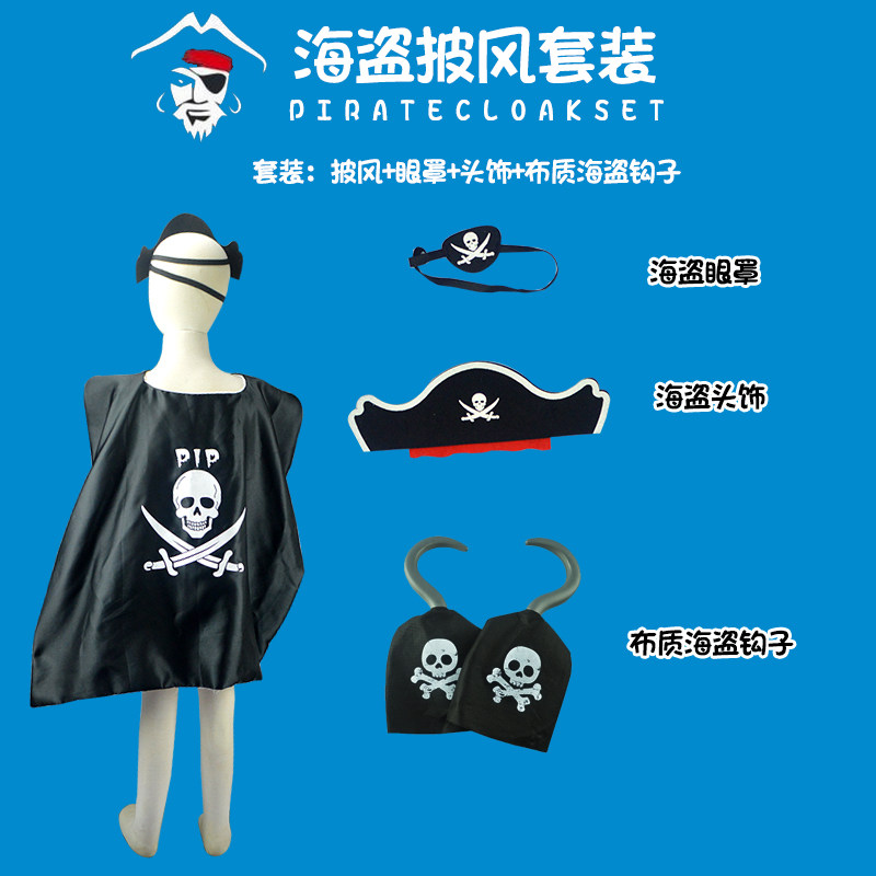 Halloween Pirate Clothing Children Pirate Cloak Skull Blindfold Hat Accessories Pirate Knife Pirate Hook Pirate Gun