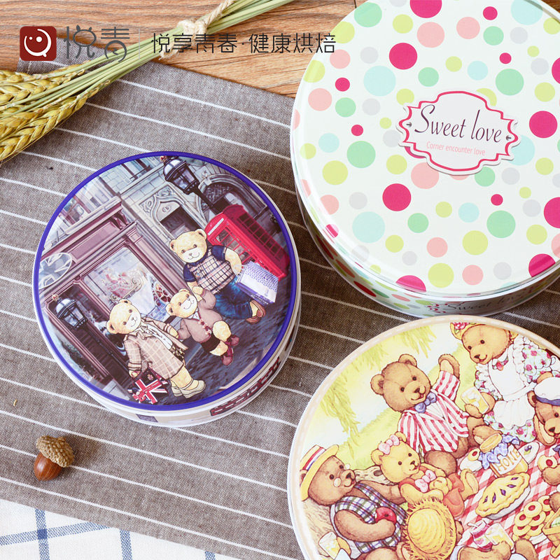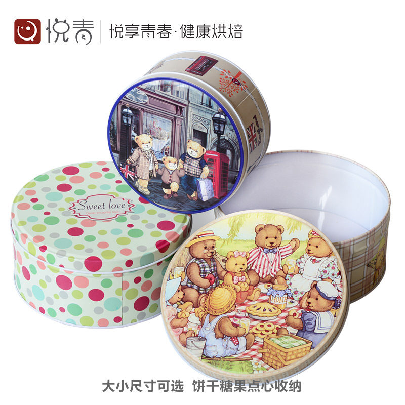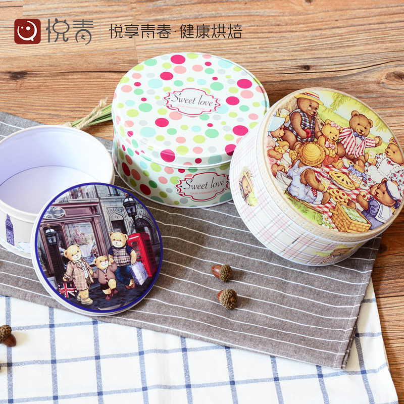 Home Cookie Cookie Box Iron Case Metal Case Cake Refreshment Packaging Box Round Packed Candy Box