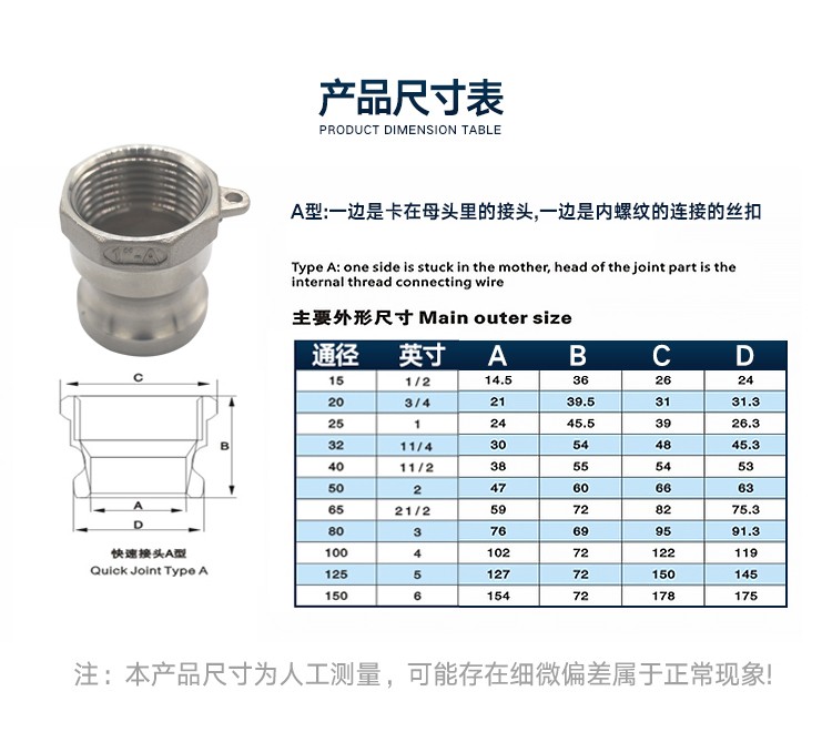Light gray dark gray gray silver black orange red rose red pink red 304 quick connect type A DN15 4 minutes 304 quick connect type A DN20 6 minutes 304