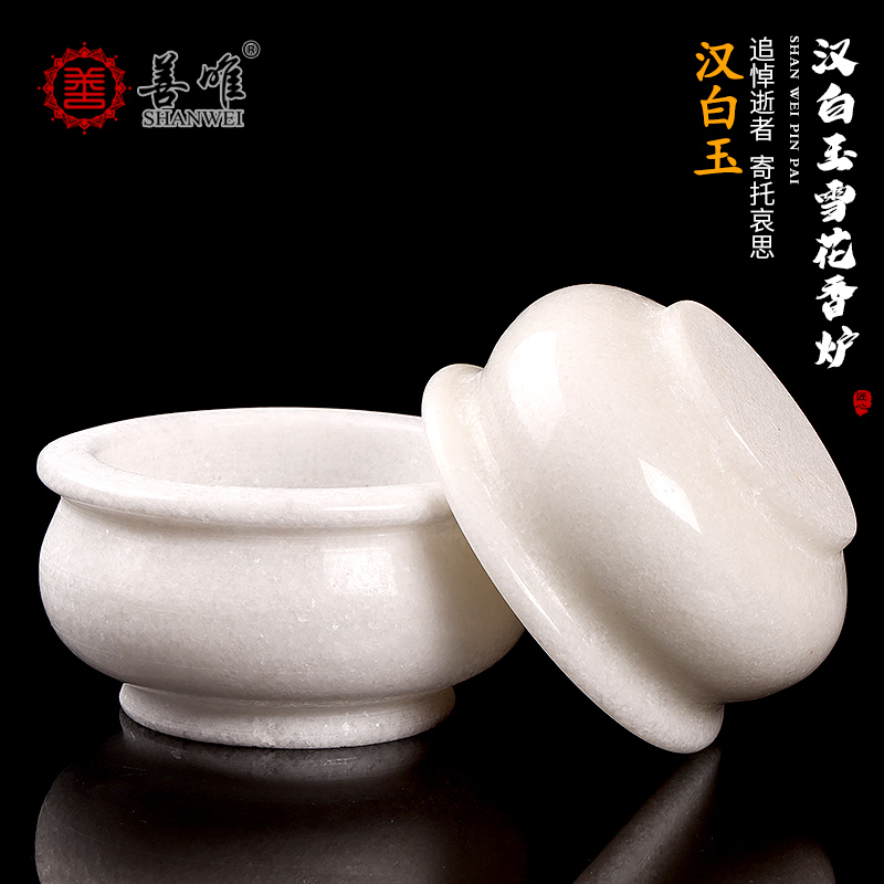 Lingtang stone censer small white marble sacrificial graveyard for stone carving Marble round household funeral supplies