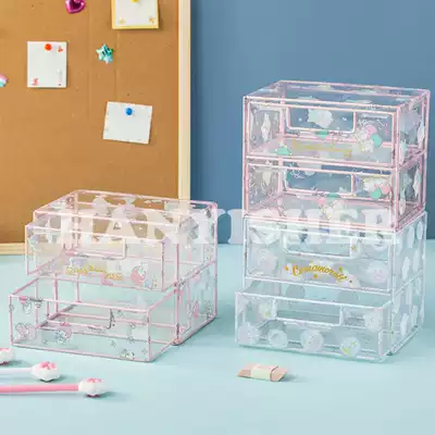 Japanese Melody Melody Gemini Yugui Dog Desktop storage box Transparent Plastic Drawer Cute
