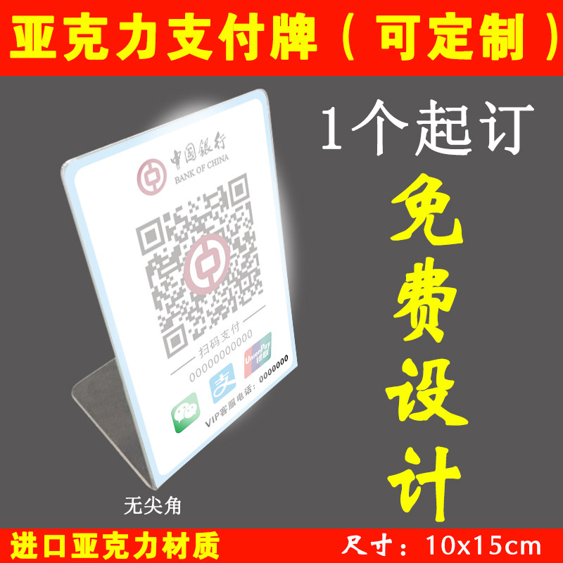 Customized acrylic bank counter two-dimensional code payment card table table card table card can be added UnionPay logo customization
