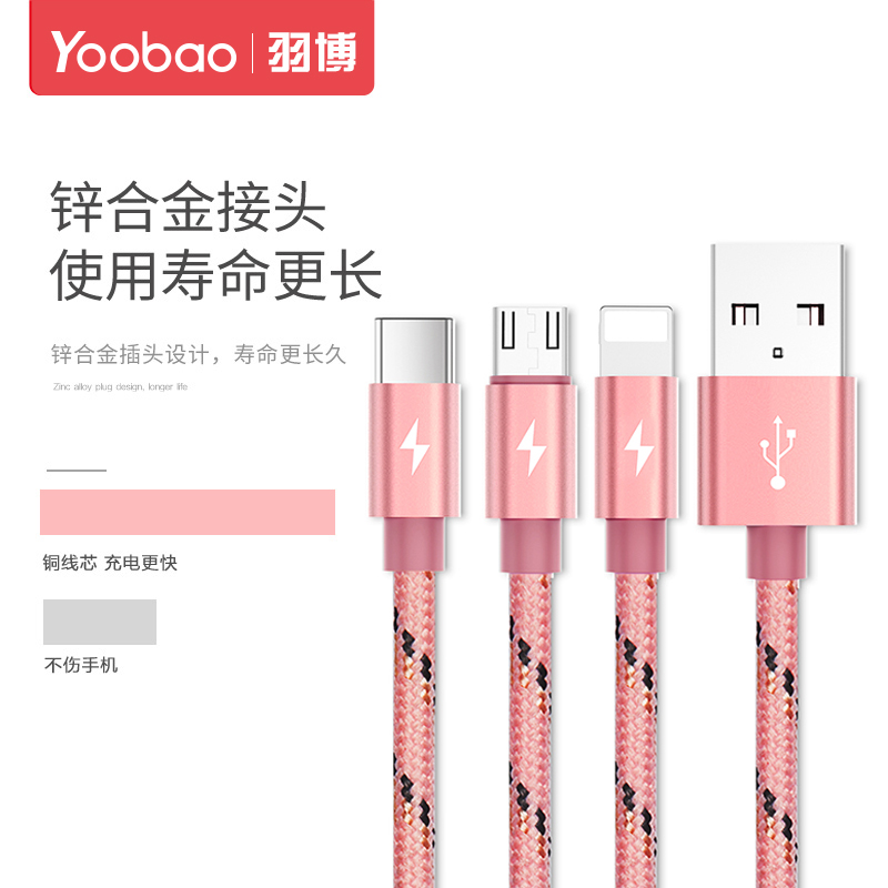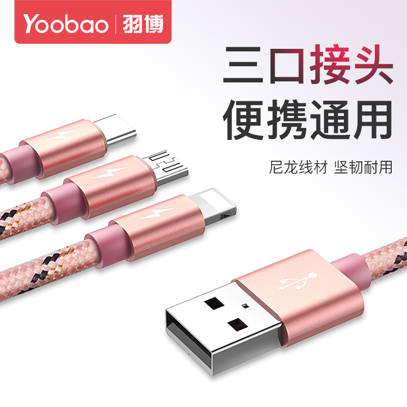 Plume data line multifunction charger charging line Three-in-one line Three used for vivo Apple Huawei mobile phone versatile one drag triple long type c charging line usb3 fit 1
