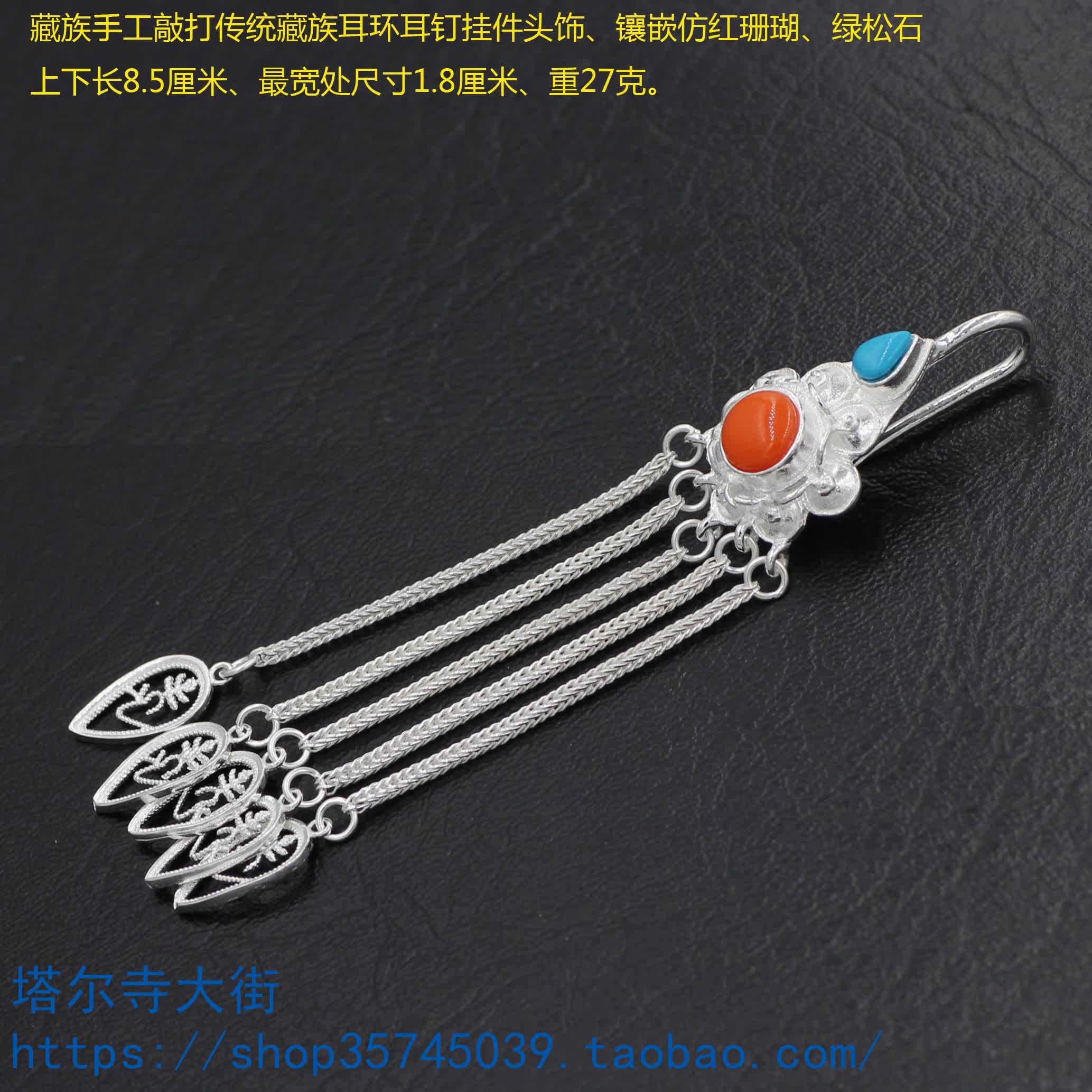 Tibetan pure silver earrings handmade inlaid simulated gemstone earring collection is not retreated