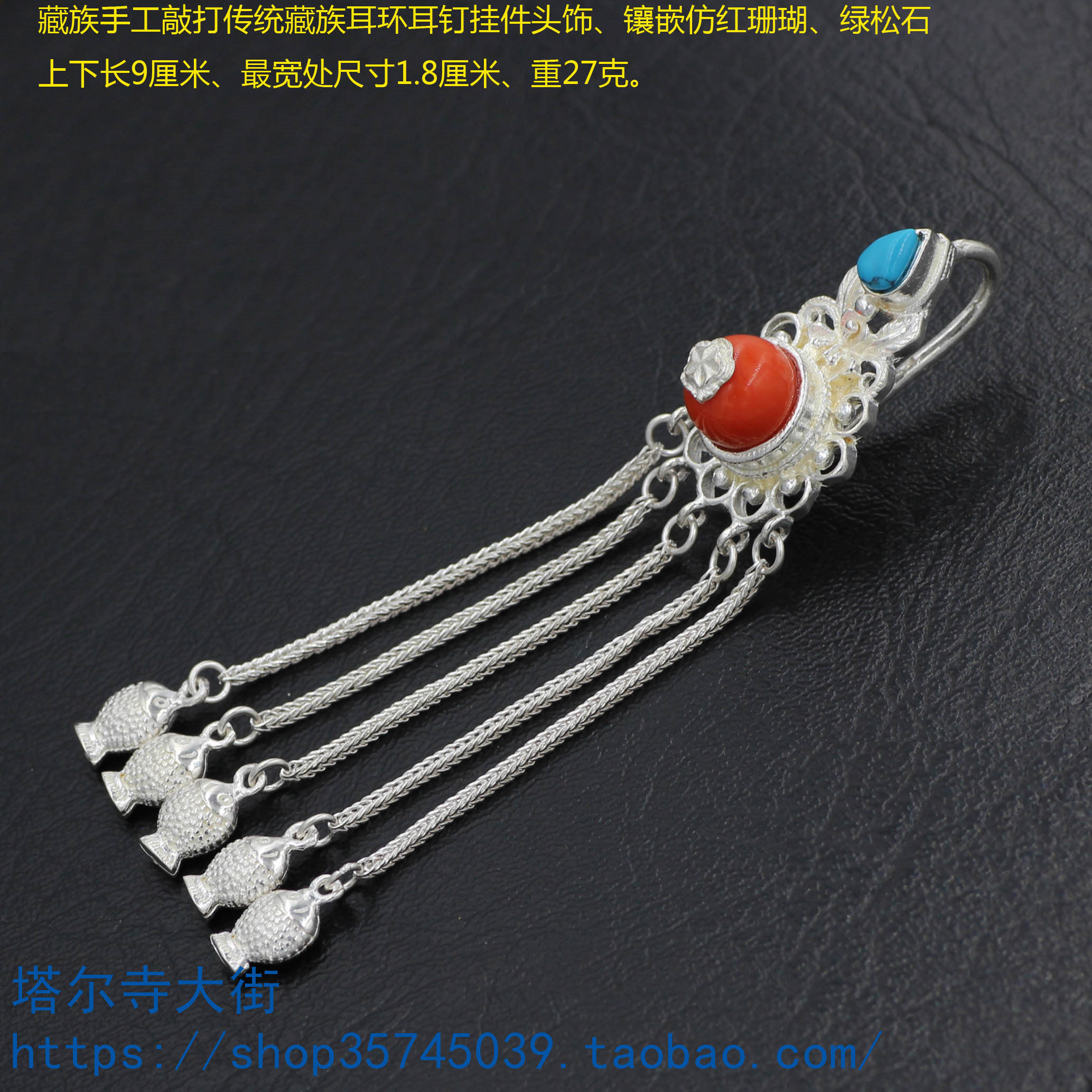 Hidden pure silver earring ear needle handmade with inlaid emulated jewel earrings Tibetan ornament not to back
