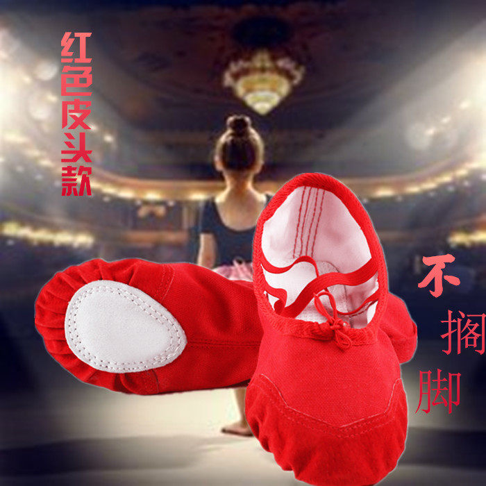 Big red children's dancing shoes women's soft shoes canvas cat's claw shoes leather head children's dancing shoes ballet