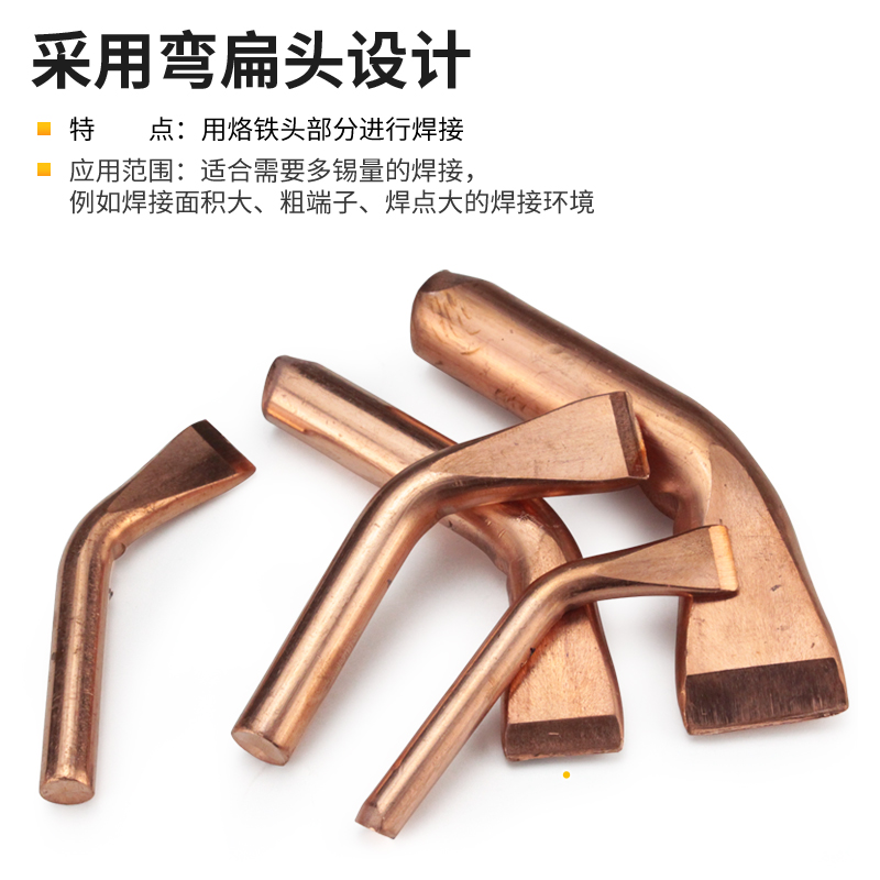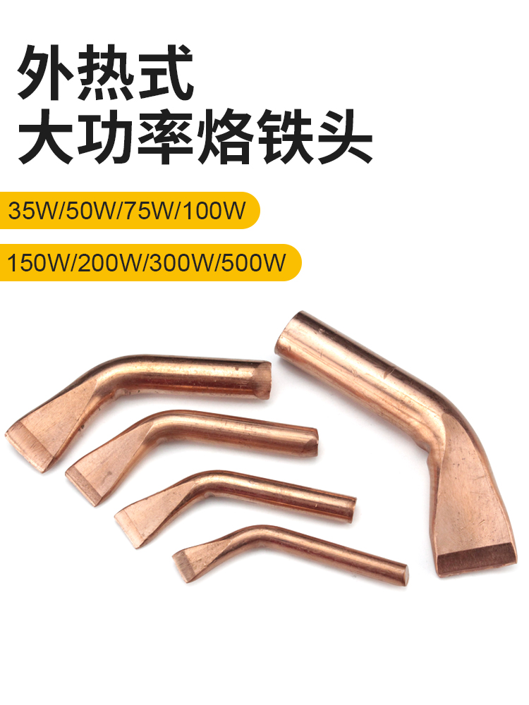 Wooden handle high power curved flat soldering iron head external heat pure copper lead-free soldering iron head welding head 100W200W300W500W