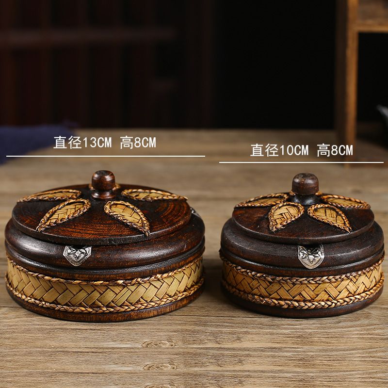 Thai Bamboo Chronicled Tobacco Ashtray Retro Southeast Asian Style Creative Personality Home Living Room Pendulum with light lavish solid wood with lid
