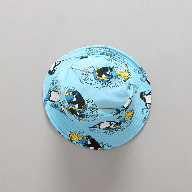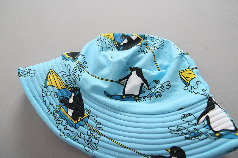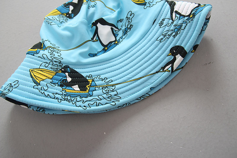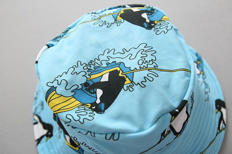 Sky blue fisherman hat Black penguin Pink fisherman hat Black Penguin Gray fisherman hat Pineapple