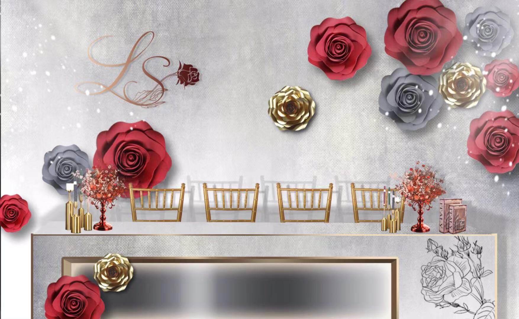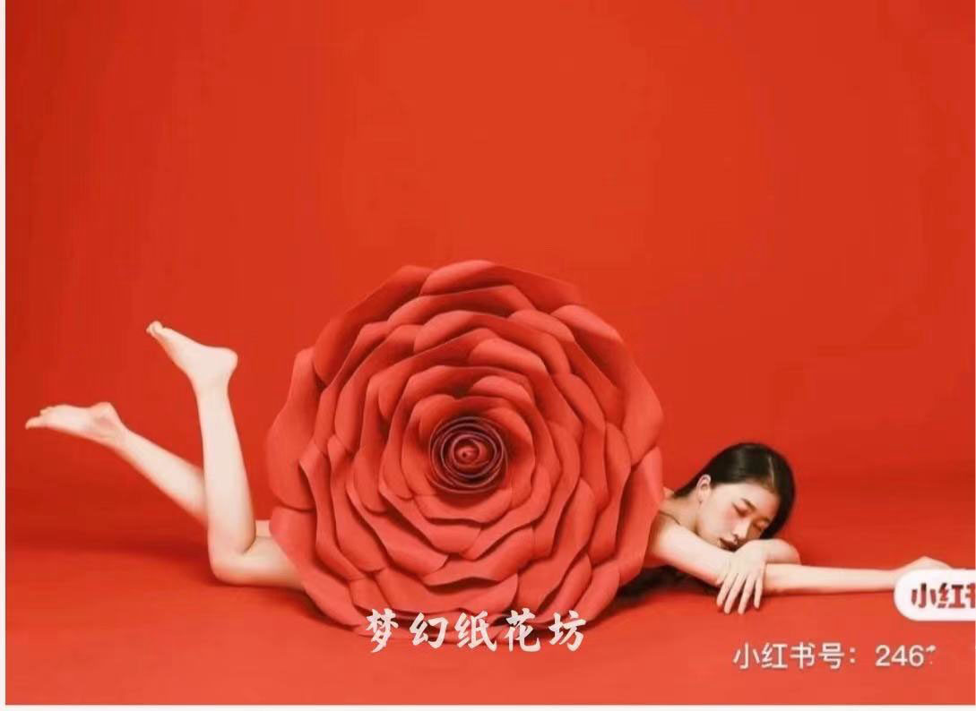 Large Red Foam Paper Flowers Stereoscopic Large Wedding Shop Window Hotel Stage Background Wall Arrangement Decorated Rose Waterproofing Flowers