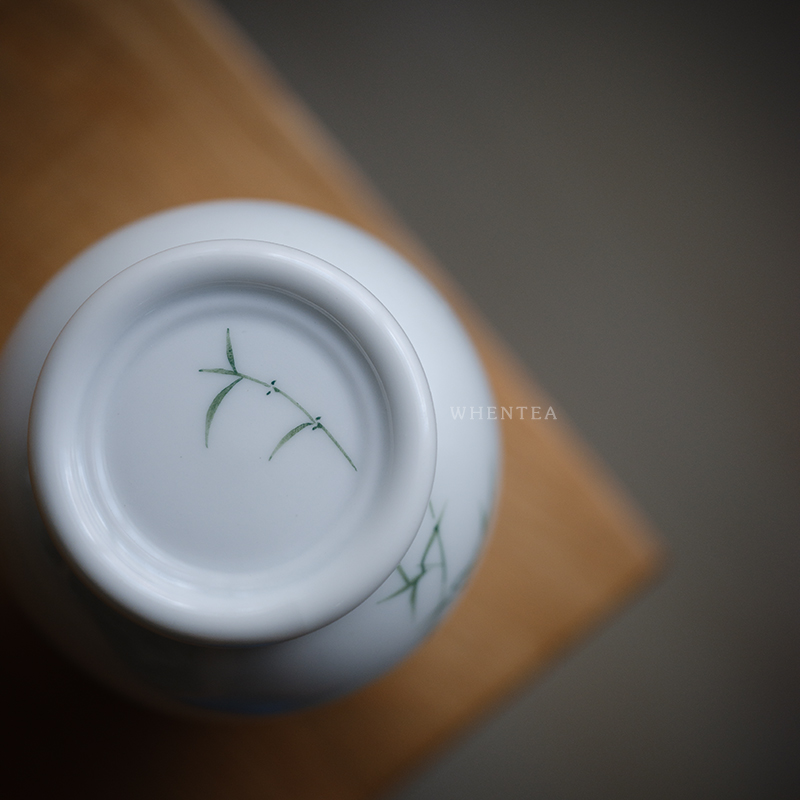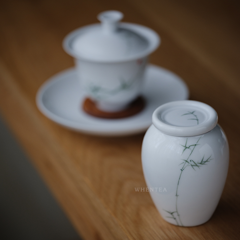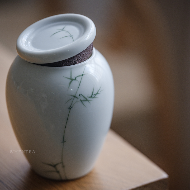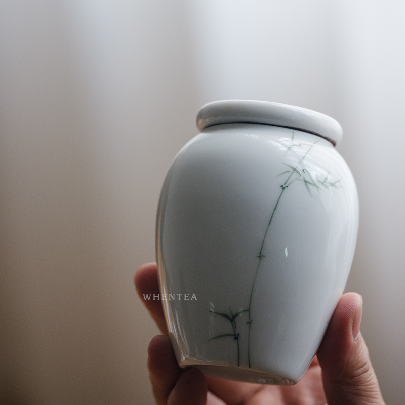 Hear) Hand-painted green bamboo tea jar Jingdezhen hand-glazed colored white porcelain small ceramic tea kiosk