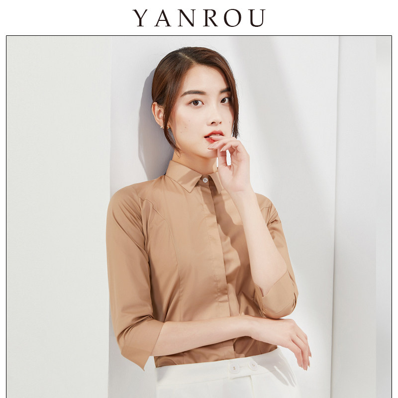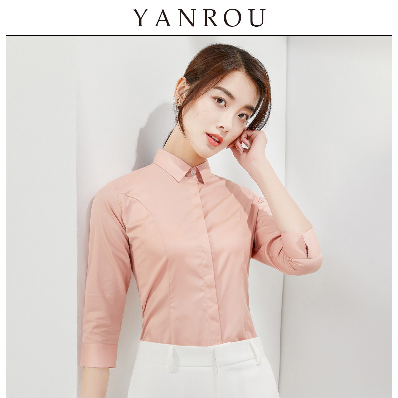 Three-quarter-sleeve white shirt women's professional 2022 spring and autumn new self-cultivation formal dress overalls tooling white five-point sleeve shirt