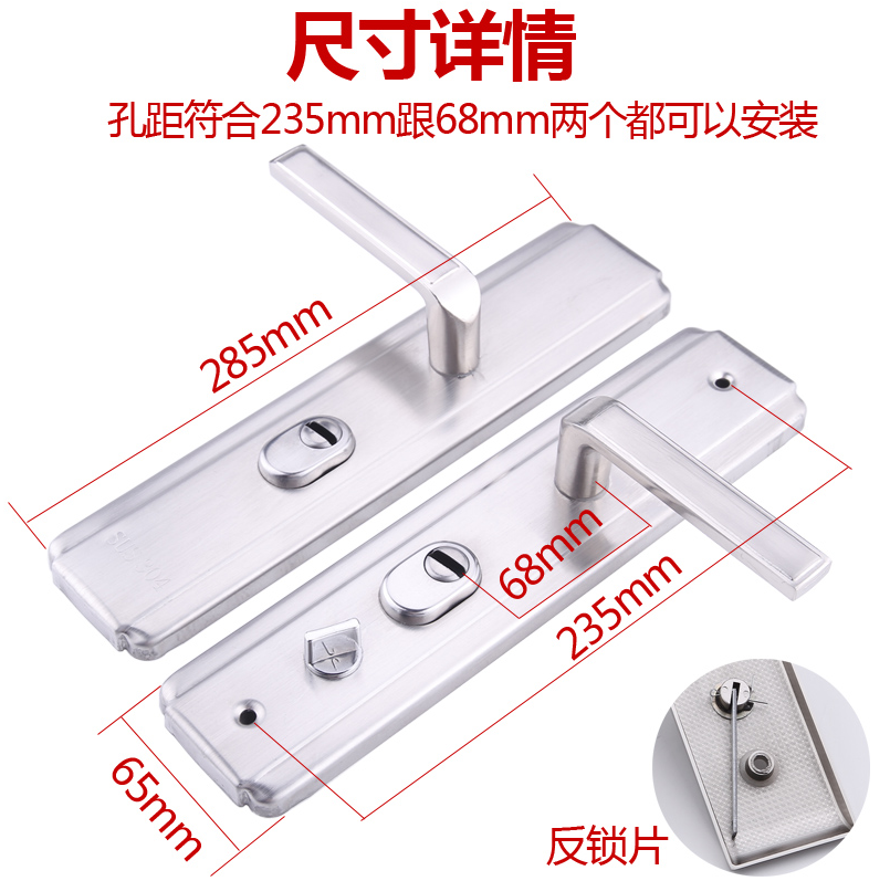 Thickened Panel Stainless Steel Security Door Lock Handle Panel Anti-Pry Steel Plate Double Door Universal Multifunction Lock