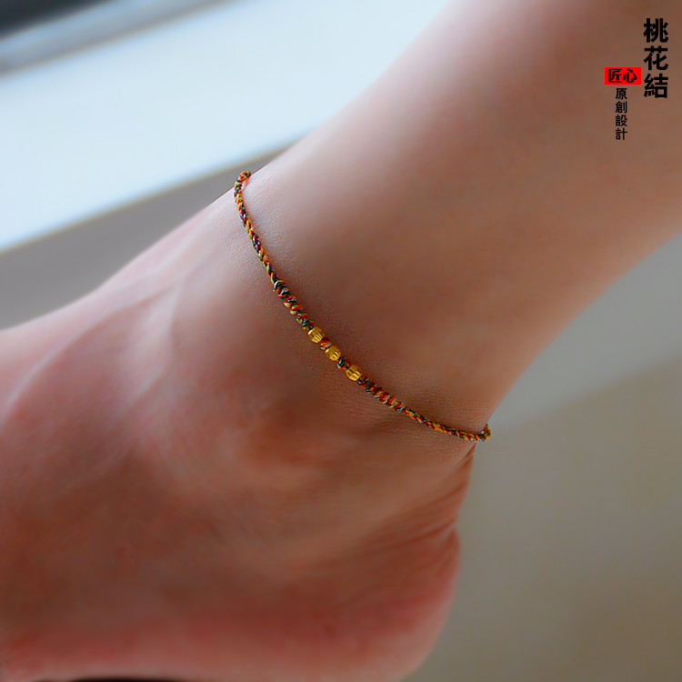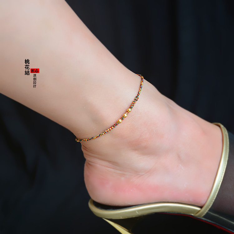 Peach Blossom Knot 24K Pure Gold Feet Necklace With Peach Blossom Walnuts Flowers Solid Marriage Wang Family Fortune 7 Colorful Feet Rope Men and women