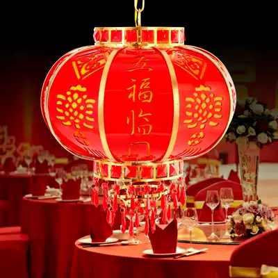 Chinese Balcony lantern Chandelier Big red Five Blessings Wedding lantern pendant Rotating kerosene lamp Crystal lantern lamp