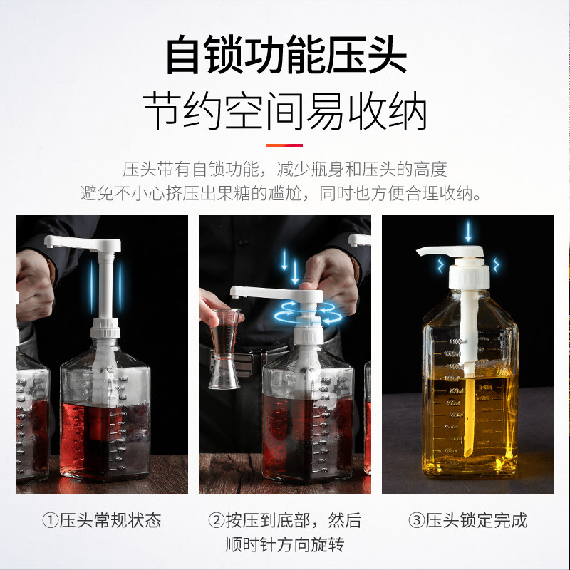 Sugar bottle glass fructose syrup press bottle bottle tea shop dedicated jam quantitative hand pressed squeeze bottle