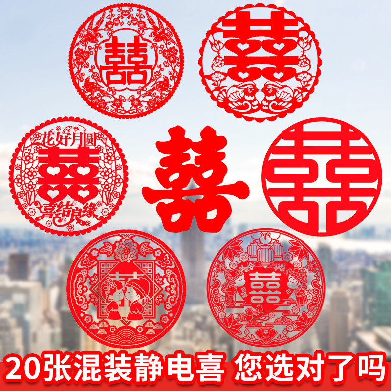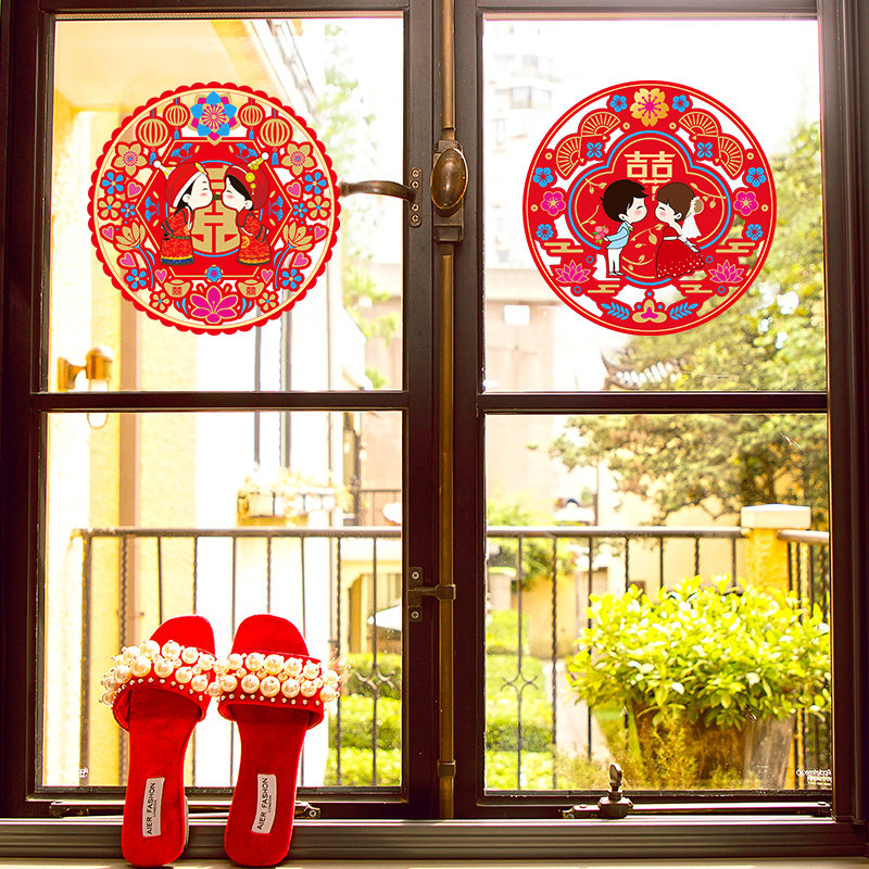 Fei Xin creative festive happy words stickers wedding supplies wedding room decoration glass paper-cut window grilles electrostatic stickers
