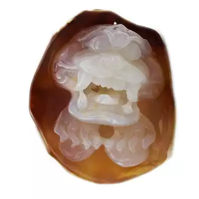Natural agate original stone carving lion handlebar original leather carved playpiece small ornaments men's gifts