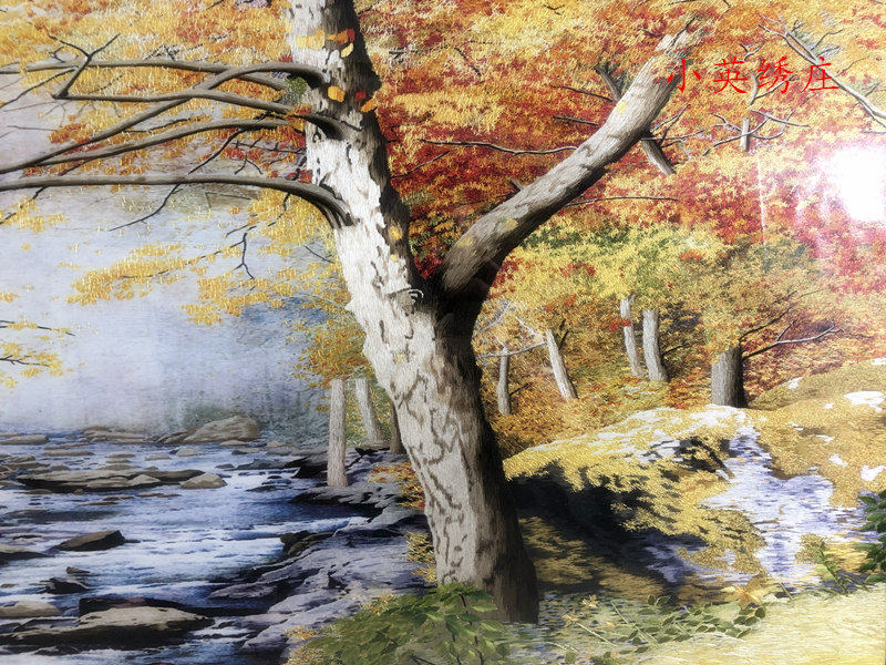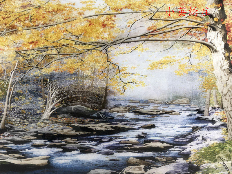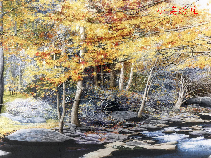 Pure handmade new boutique Suzhou embroidery painting Su embroidery finished product hanging painting Xuanguan decoration painting 60160 golden autumn scenery