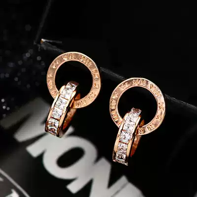 Two-ring earrings retro Hong Kong style fashion earrings female rose gold double ring circle ring earrings simple and wild tide