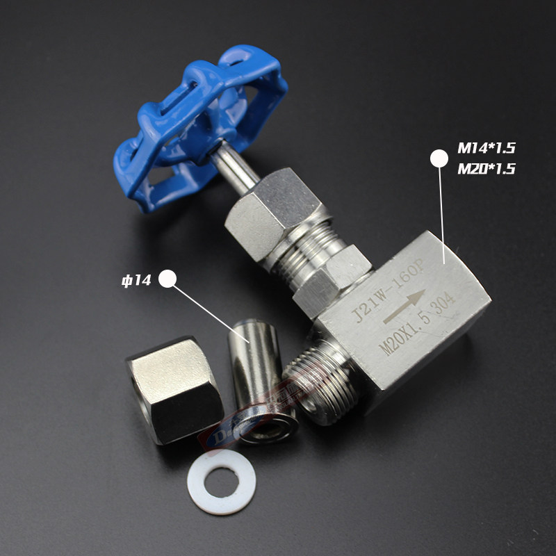 J21W 304 stainless steel pressure gauge valve Wire inner thread welding end M20*1 5 M14*1 5