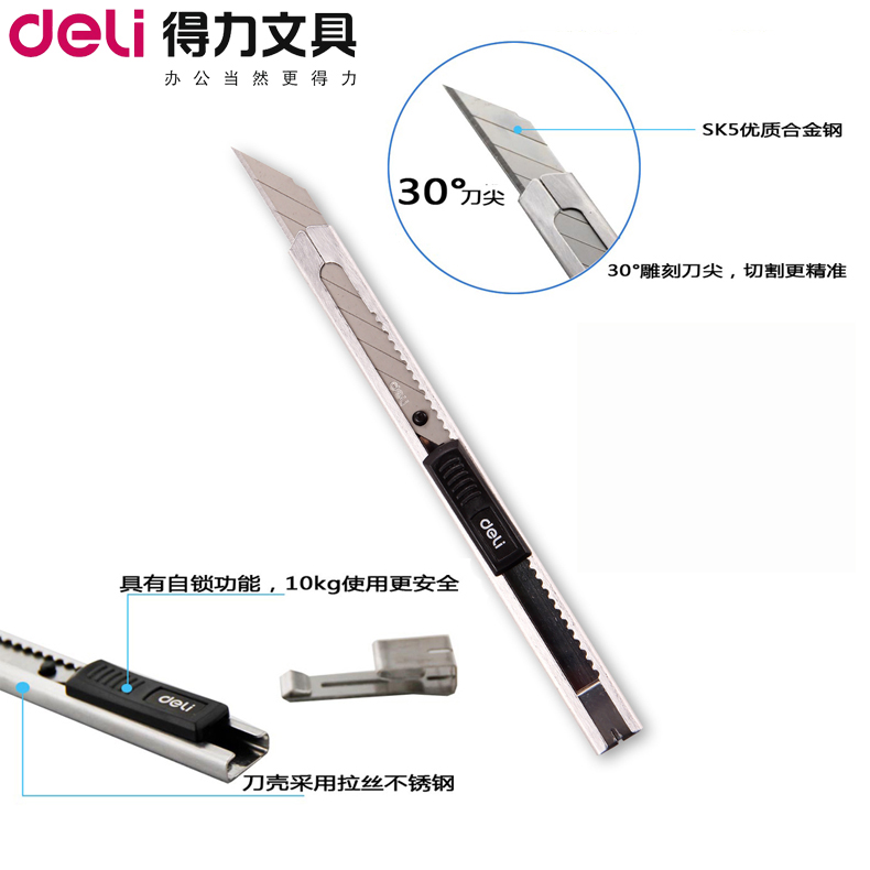 Deli 2034 small utility knife paper knife carving wallpaper knife 30 degree angle car film stainless steel tool knife