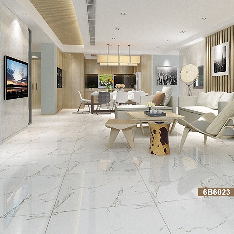 Jazz White Full Throw Glazed Tiles Interior Modern Fashion Minimalist Style Floor Brick White Bottom Blue Grey Grain Tiles