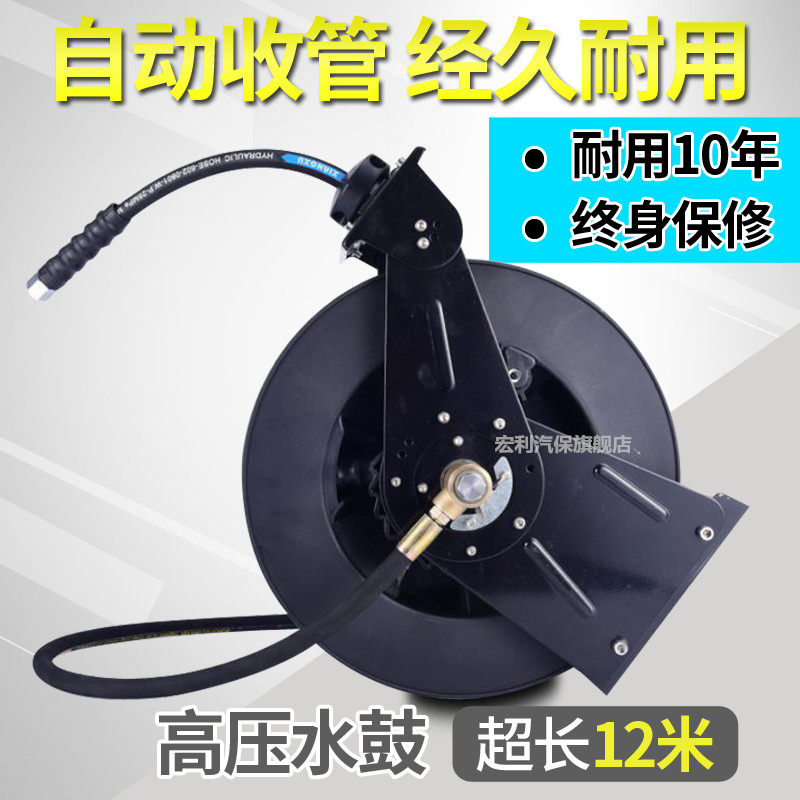 Automatic telescopic curler high-pressure water drum 12 m steel wire water pipe collector's car wash shop special high-pressure roll pipe