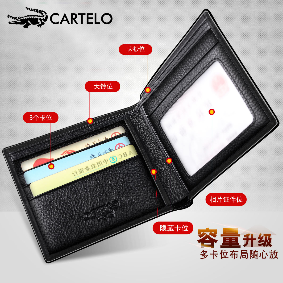 (headlayer cow leather warranty for three years) Crocodile genuine leather wallet men's short and soft money clip male leather clip trend