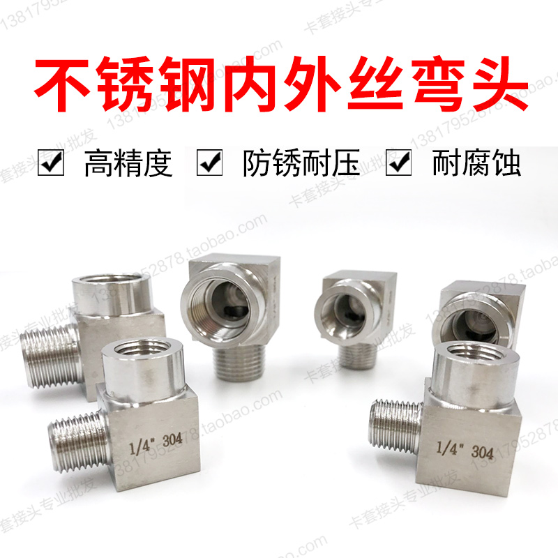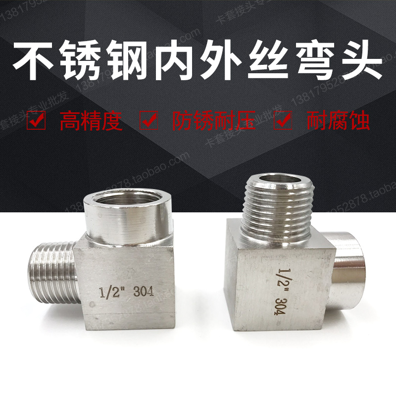 304 stainless steel CNC internal and external wire elbow high pressure 2 points thickened internal and external tooth elbow 4 points internal and external thread elbow