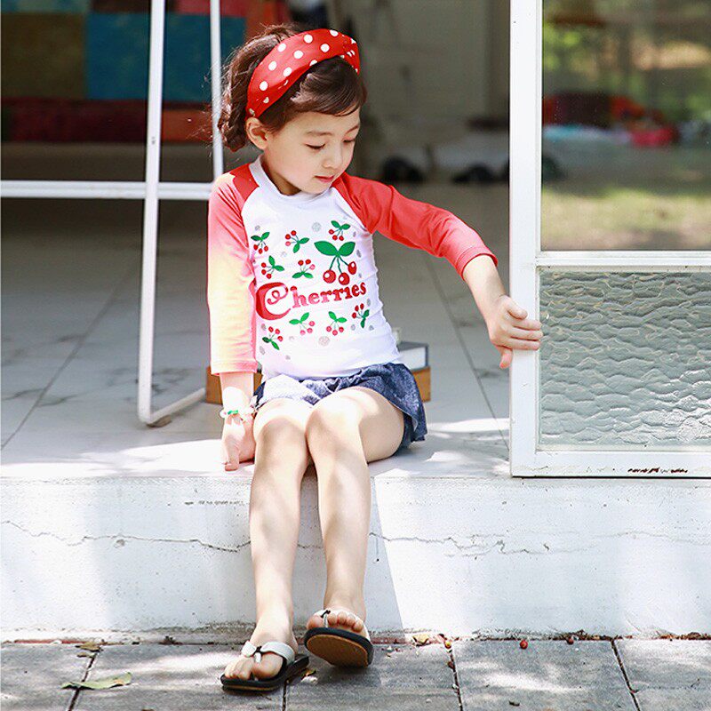 Children's swimsuit exported to South Korea children's swimsuit girl baby middle and middle children long sleeves warm sunscreen split skirt type swimsuit