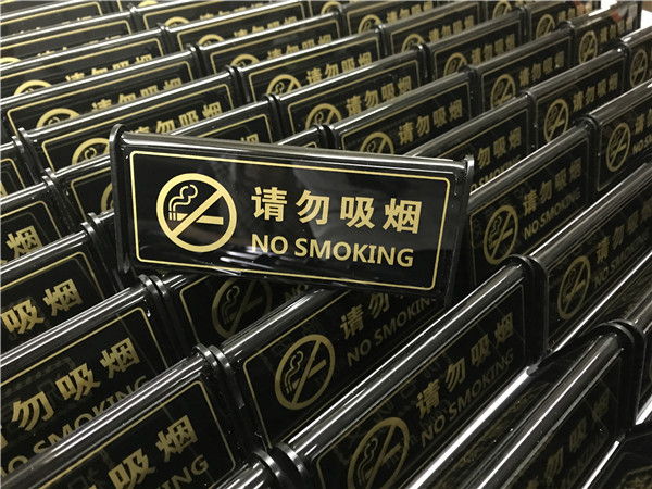Hotel creative three-dimensional black acrylic printing hot bending no smoking warning card safety warning card