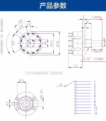 Band switch gear switch PCB board switch 2 knives 6 gears adjustable handle length 20mm