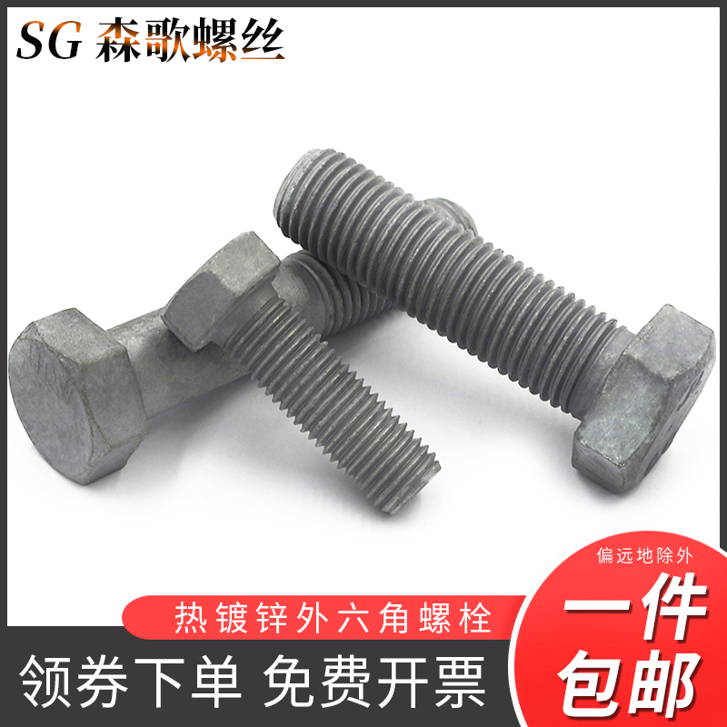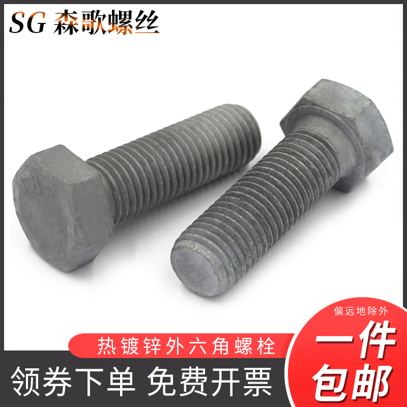 8 8 Class hot-dip galvanized external hexagonal screw hot-dip zinc bolts high strength M12 * 70 * 150-200 full-series specifications