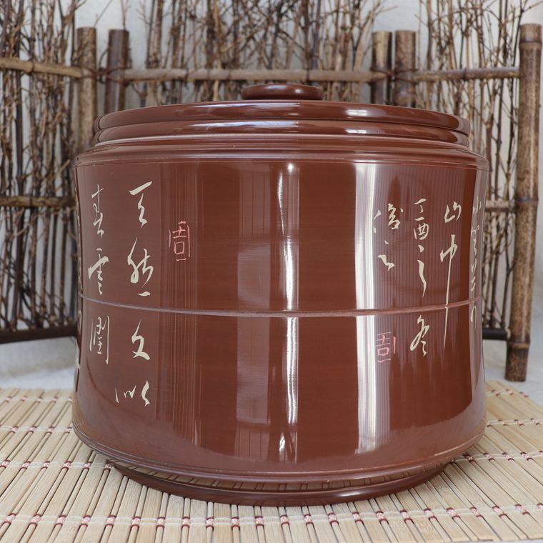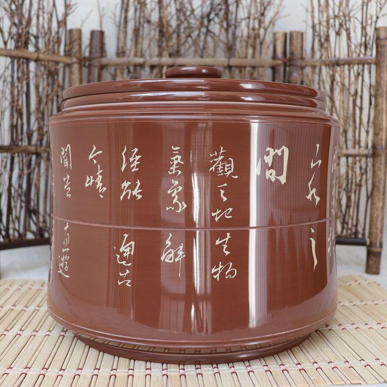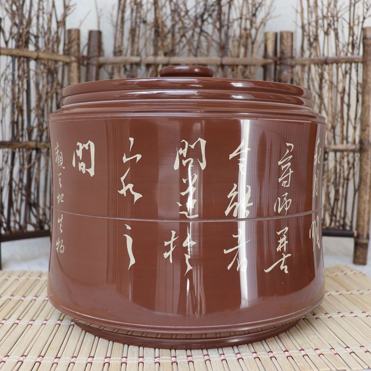 Yunnan Jianshui purple pottery tea set black pottery tea storage large tea pot famous handmade boutique seven cakes purple pottery tea jar