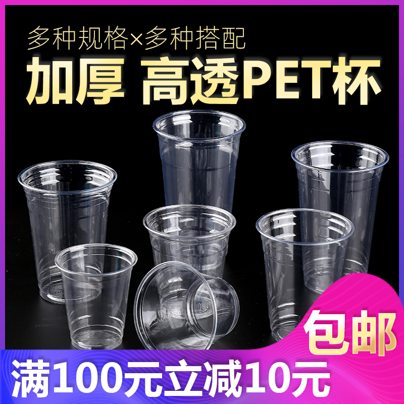 Disposable PET transparent plastic milk tea mug juice cold drinks Coffee packed cup thickened with lid Custom logo