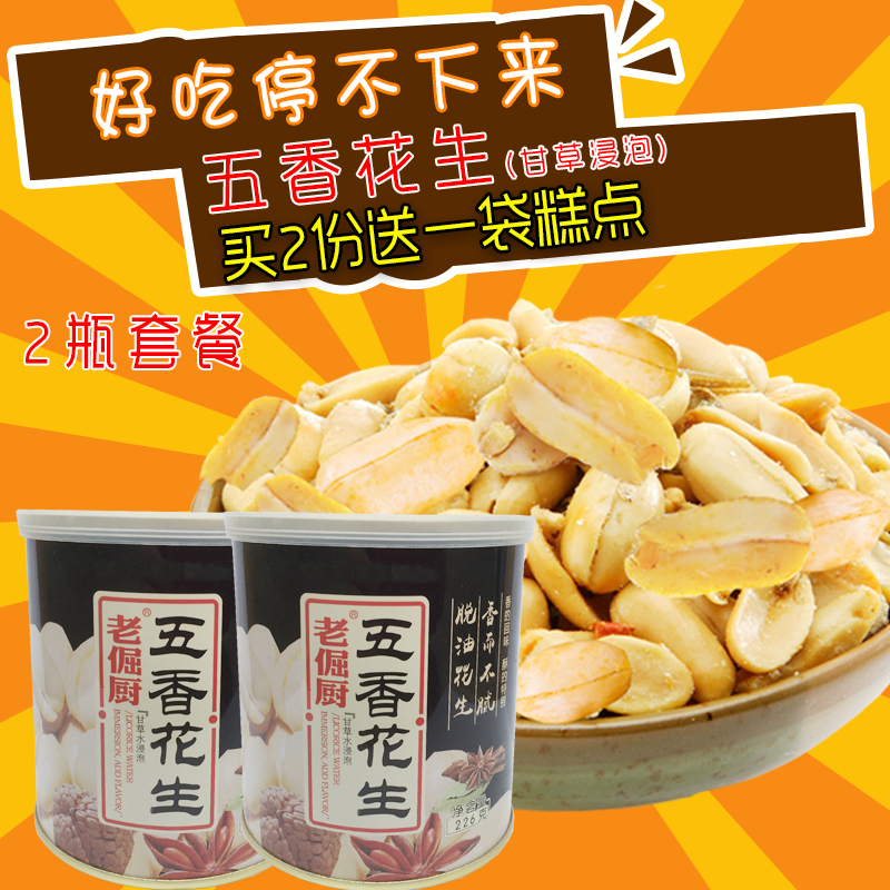 Old Stubborn Kitchen 5 fragrant peanut kernel 226gX2 bottled terrotic nut dried fruit snacks peanut rice casual food