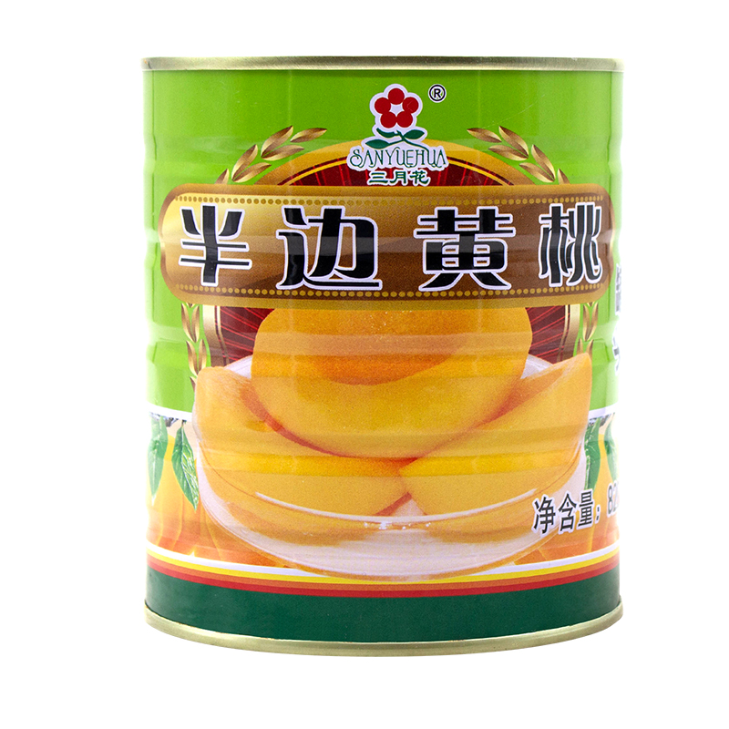 March flower half yellow peach canned 820g fresh yellow peach fruit canned open lid instant baked decorative fruit