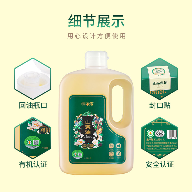 Deerle organic low-temperature pressed cold-pressed camellia oil 2L fine camellia seed oil gift box Jiangxi Shangrao