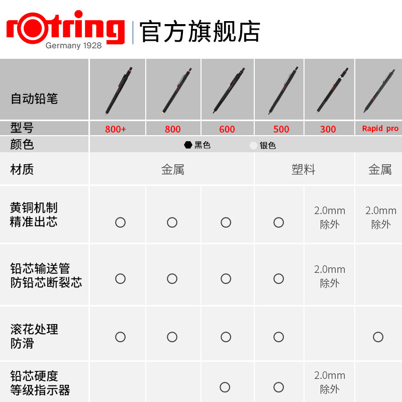 German Rotring Red Ring Automatic Pencil 500 Active Pencil Black Metal Texture Construction Engineering Professional Student Drawing Tool 0 5 0 7 mm HB